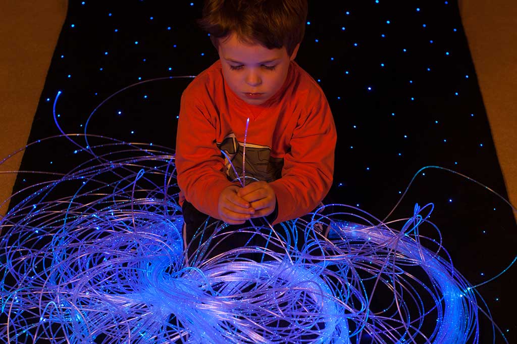 Voor snoezelruimtes leveren wij klantspecifieke systemen met vezelverlichting. Dit omvat sterrenhemels en lichtgevende vezels die naar keuze een gewenst lichteffect kunnen geven. Hiermee is het mogelijk om sfeer te creëren die een rustgevend of juist activerend effect stimuleert.